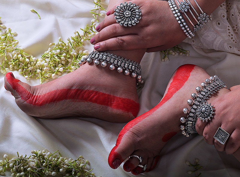 In previous time as gold was considered sacred, only Silver was used to adorn women below waist. There is a special importance and significance of silver jewellery such as Bichua, Payal, etc and are often referred to as ‘Suhag ki Nishani’ which is worn as a proud display of being ‘Suhagan’. In recent times, Silver jewellery has got a modernised touch and is often worn as Oxidized Silver Jewellery which is very traditional yet funky in its appearance and is loved equally by girls and ladies.
